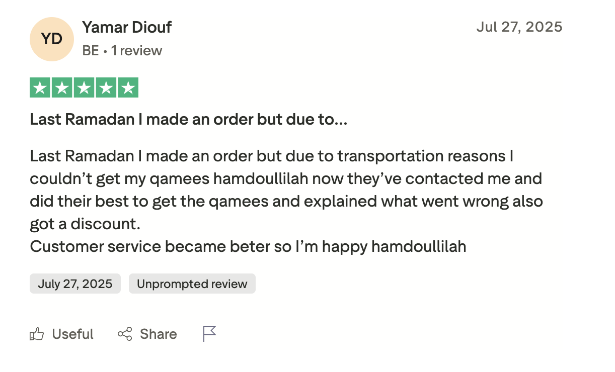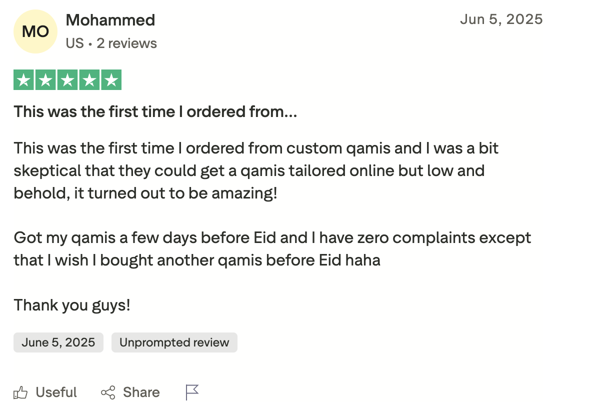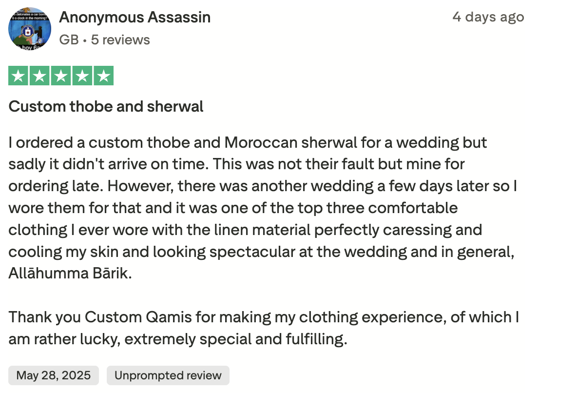 What sets this Qamis brand apart from others is their truly bespoke approach. Every Qamis is unique, designed especially for you — no more compromises on size or fit.
