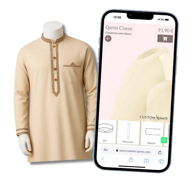 We’ve created an amazing feature: the “Tailored Qamis” tool. Design your Qamis in just a few simple steps, from cut to finishing touches — like a video game, but for real.
