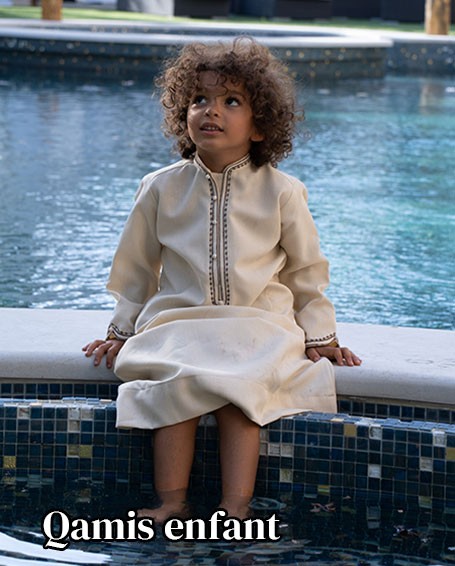 From €100, shipping is free. Take advantage of this to upgrade your wardrobe with several tailor-made Qamis. You can even include essential accessories in your order — Chechia, Keffiyeh, and custom Bisht to complete your outfit with elegance and refinement.