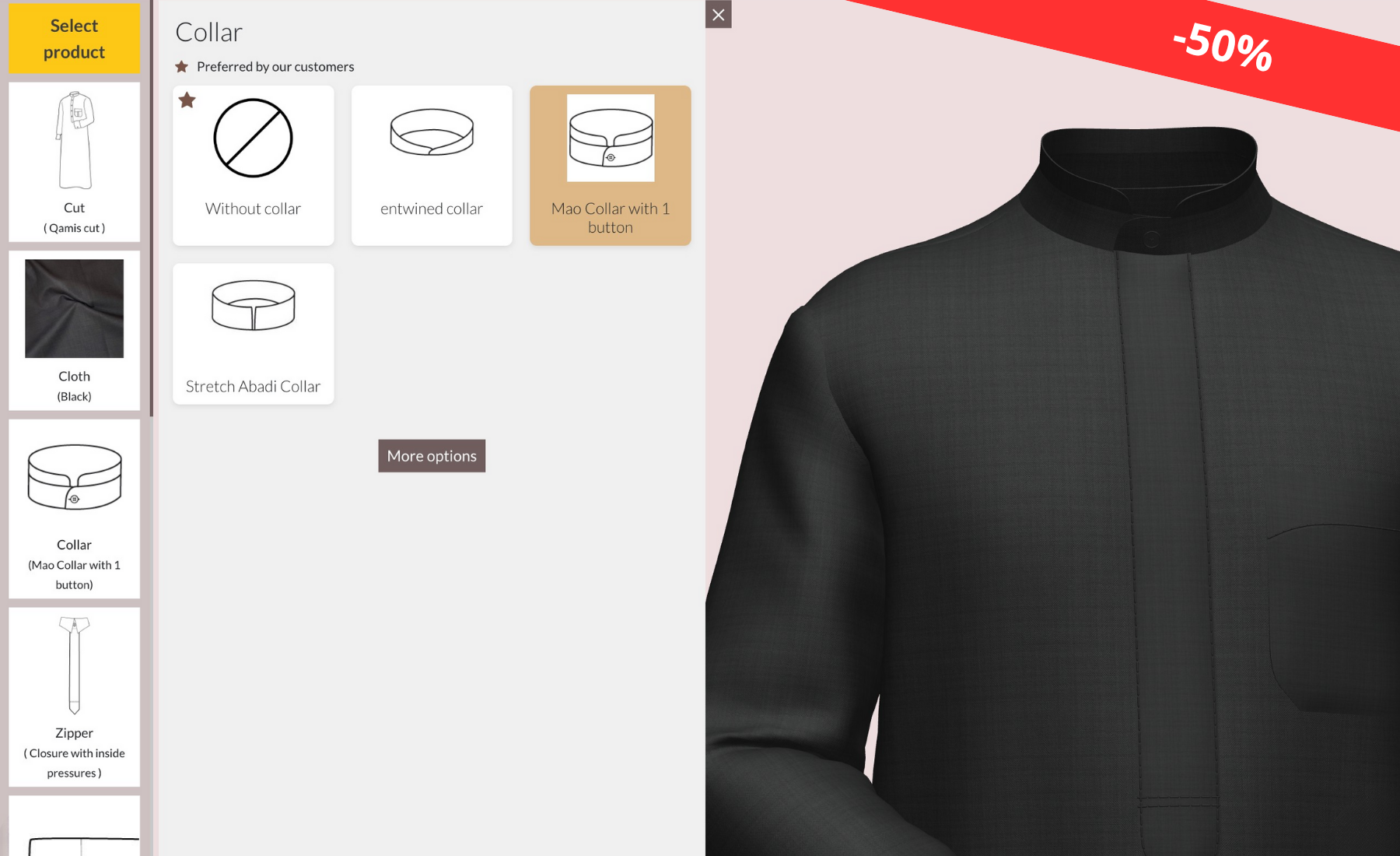 We’ve created an amazing feature: the “Tailored Qamis” tool. Design your Qamis in just a few simple steps, from cut to finishing touches — like a video game, but for real.
