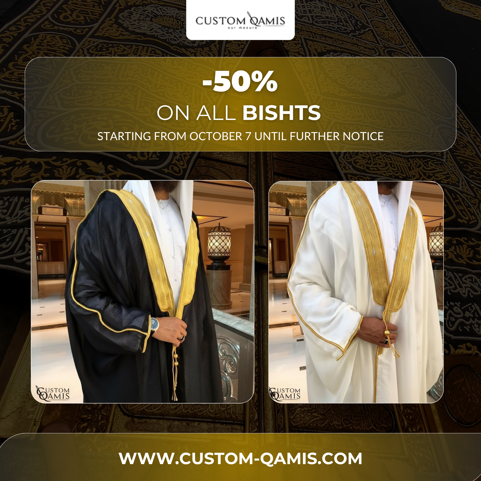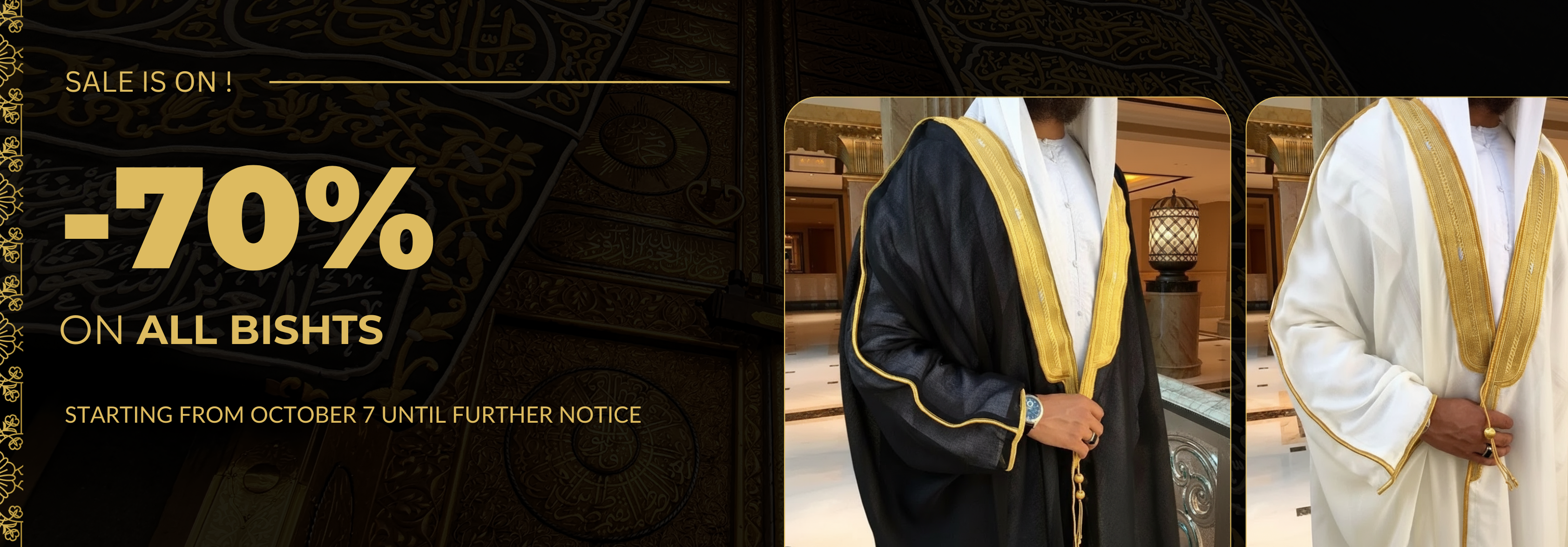 Discover our collection of traditional bishts and accessories: chechia, ghutra, iqal, shemagh... everything you need for an authentic and distinguished style.