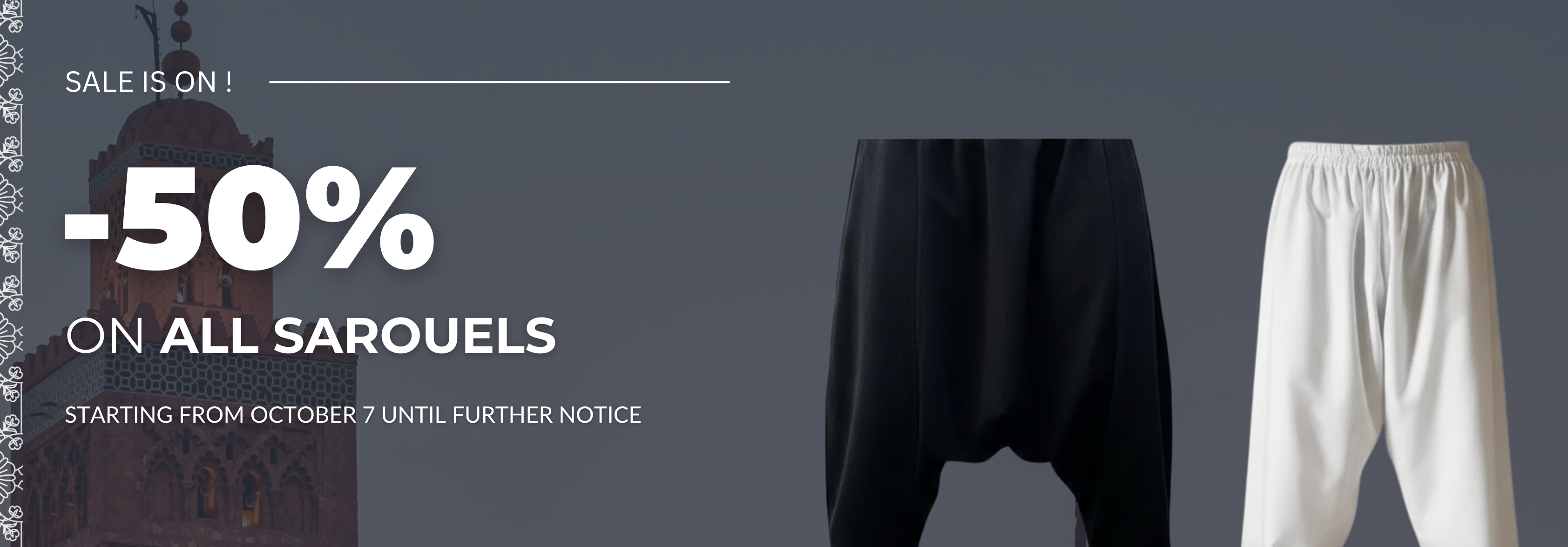 Sarouels (or serouel) are an iconic garment in Oriental fashion, combining comfort and elegance. Originating in the Middle East and South Asia, they are characterised by a loose fit around the hips and thighs.