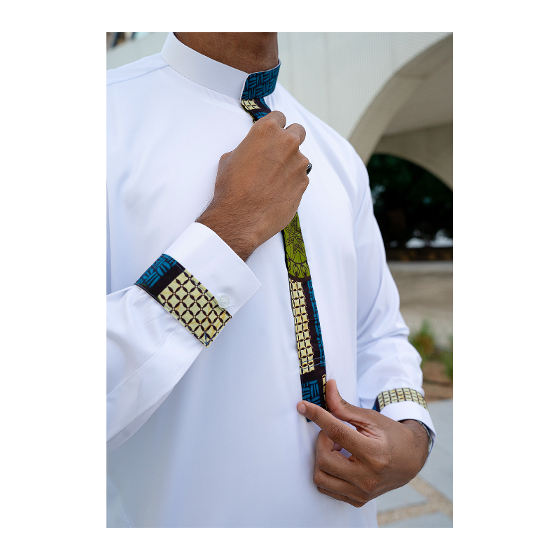 Dive into the elegant fusion of Saudi heritage and African inspiration with our Special Edition Thobe Classic Saudi. Designed for modern men who appreciate the subtle blend of tradition and contemporary style, this Thobe offers a unique interpretation with African touches. The African Wax Fabric used for the closure and collar evolves in patterns according to fabric availability, creating a truly original piece.