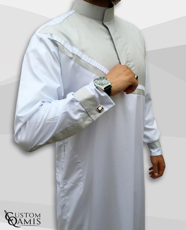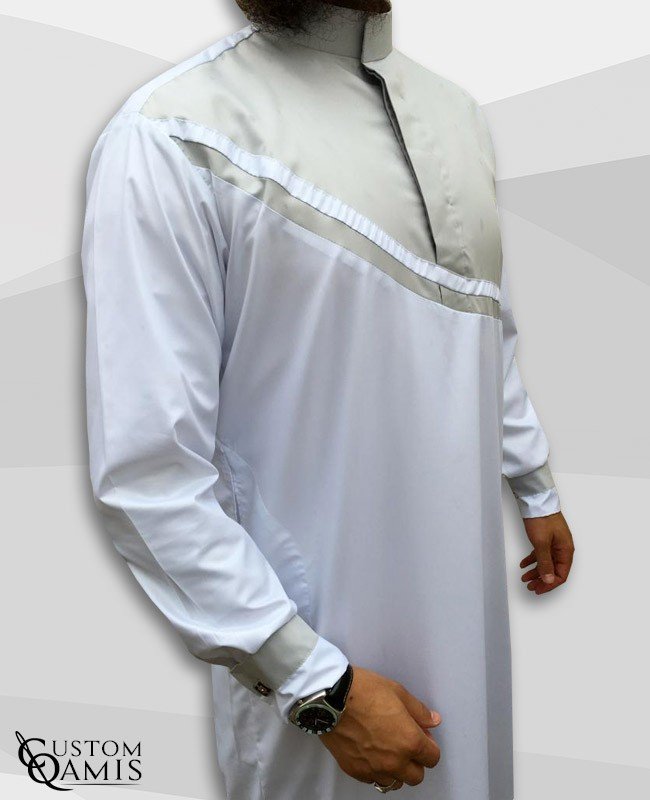 Vous êtes un homme de confession musulmane à la recherche d'une pièce vestimentaire qui convient pour un nombre important d'occasions ? Le Qamis, ou encore Kamis ou Abaya homme est fait pour vous. Le Qamis Wave blanc satiné et gris clair est un des modèles raffinés dont vous avez la possibilité de faire l'acquisition.